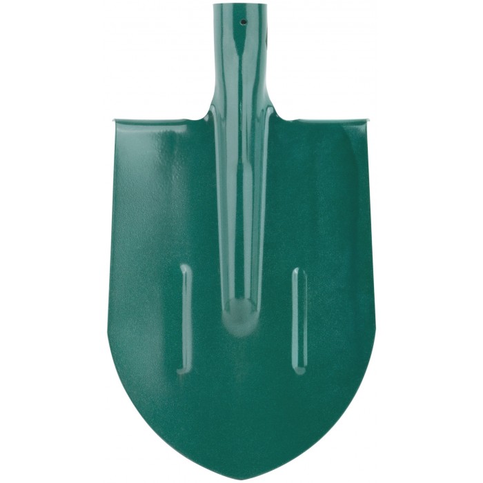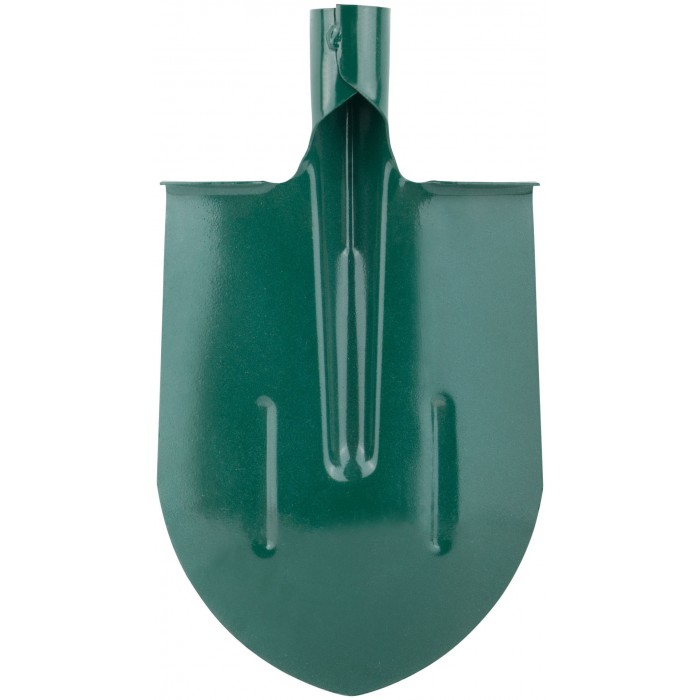 Лопата штыковая, с ребрами жесткости, без черенка. Посадочный диаметр 40 мм. Материал: инструментальная сталь.