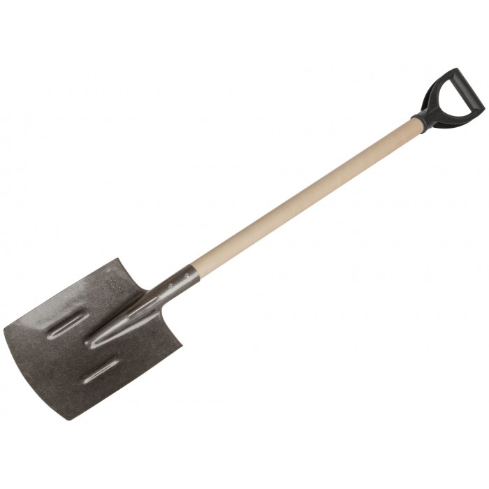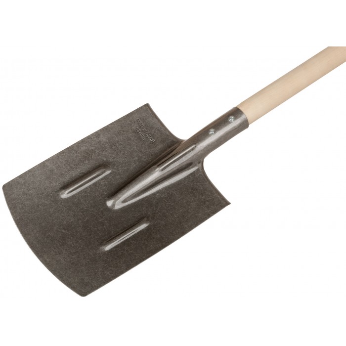 Лопата штыковая прямоугольная, ''рельсовая сталь'', с деревянным черенком и V-ручкой. Толщина полотна 1,3 мм. Материал: рельсовая сталь, дерево, пластик.