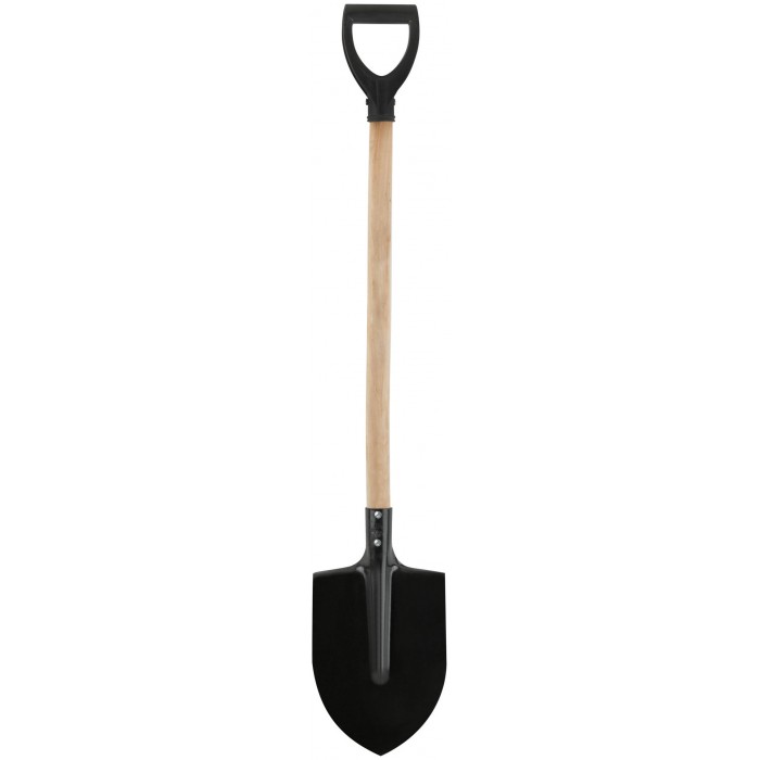Штыковая. С деревянным черенком и V-ручкой. Материал: углеродистая сталь.