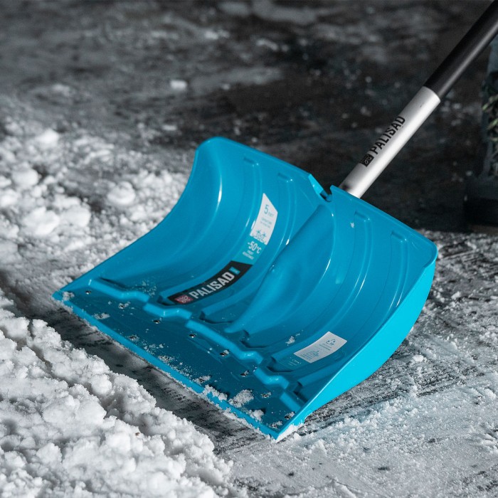 Лопата-скрепер для уборки снега, полипропилен, 460х320х1300 мм, алюминиевый черенок, ПВХ, LUXE Palisad (61797)