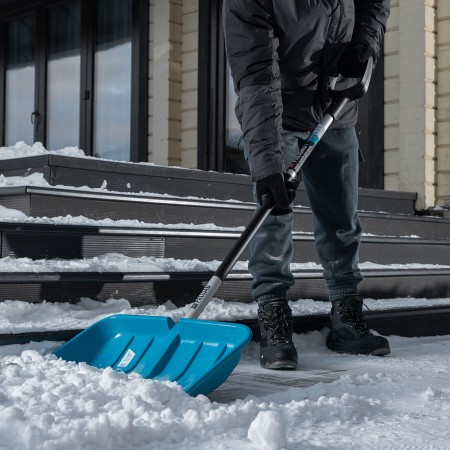 Лопата-скрепер для уборки снега, полипропилен, 550х340х1450 мм, алюминиевый черенок, ПВХ, LUXE Palisad (61727)
