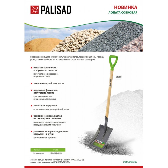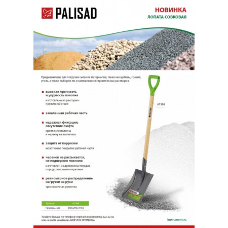 Лопата совковая, 250х295х1150 мм, деревянный лакированный черенок Palisad (61388)