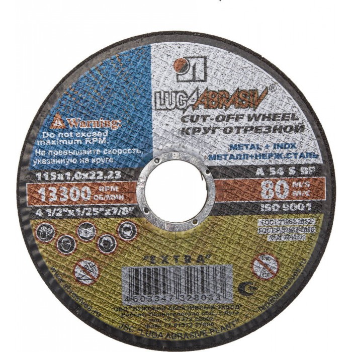 Круг отрезной по металлу 115 x 1.0 x 22.2 мм, для УШМ ЛУГА 3612-115-1.0
