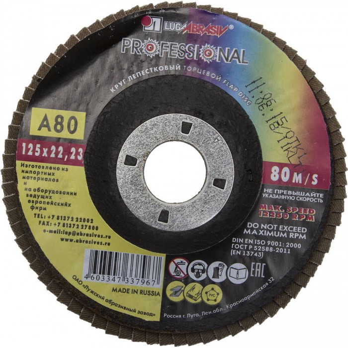 Круг лепестковый торцевой 125 мм, P80 ЛУГА 3656-125-80
