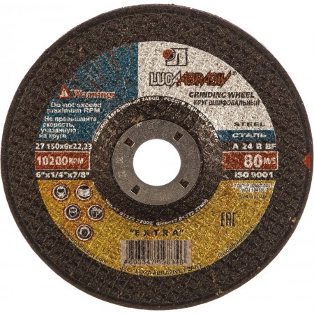 Круг шлифовальный по металлу 150 x 6 x 22.2 мм, для УШМ ЛУГА 3650-150-06