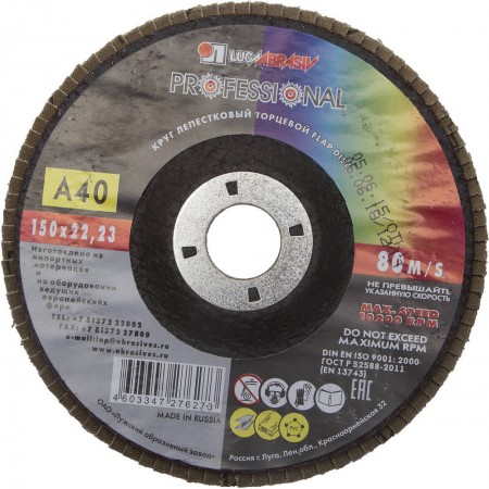 Круг лепестковый торцевой 150 мм, P40 ЛУГА 3656-150-40
