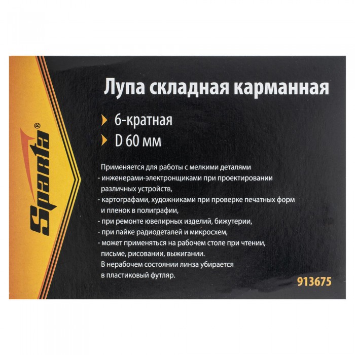 Лупа складная, карманная, 6 кратная, D 60 мм Sparta (913675)