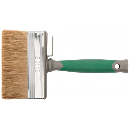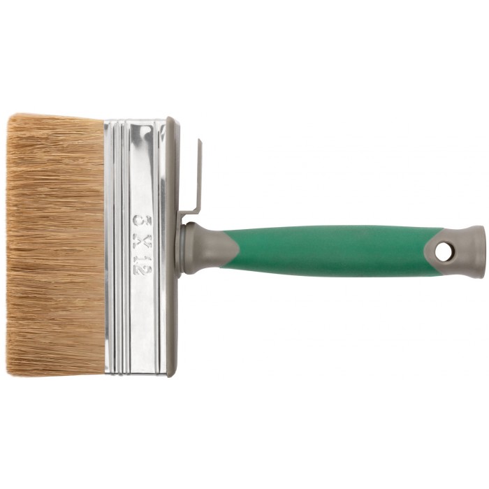 Высококачественный микс из темной натуральной и синтетической щетины. 75% топс. Оптимально подходит для лазурей, пропилок, антисептиков. Нержавеющий обжим. Эргономичная прорезиненная ручка.