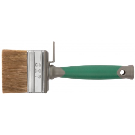 Высококачественный микс из темной натуральной и синтетической щетины. 75% топс. Оптимально подходит для лазурей, пропилок, антисептиков. Нержавеющий обжим. Эргономичная прорезиненная ручка.
