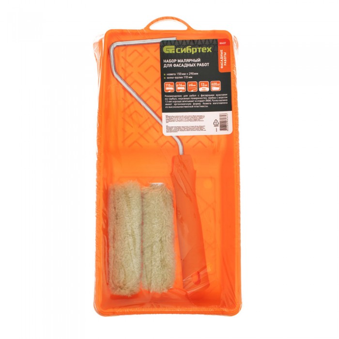 Малярный набор для фасадных работ: кювета 150 мм х 290 мм и мини-валик 110 мм Сибртех (80457)