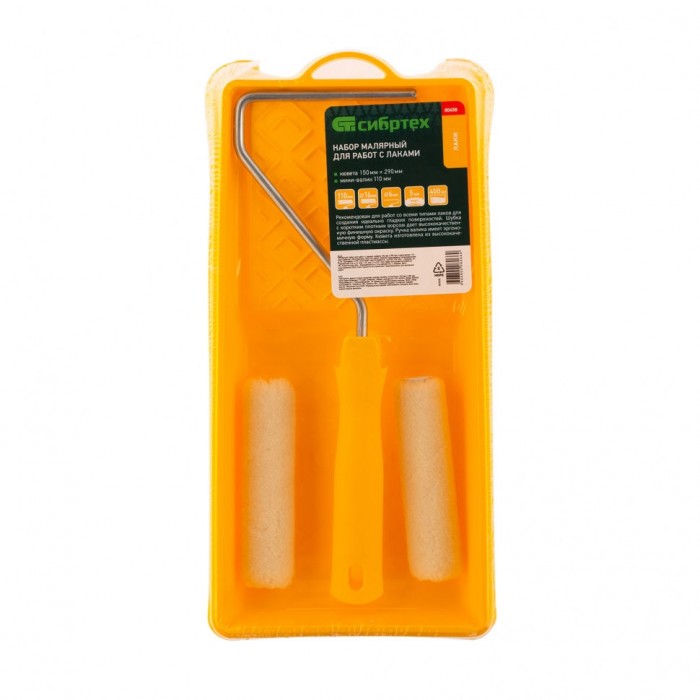 Малярный набор для работ с лаками: кювета 150 мм х 290 мм и мини-валик 110 мм Сибртех (80458)