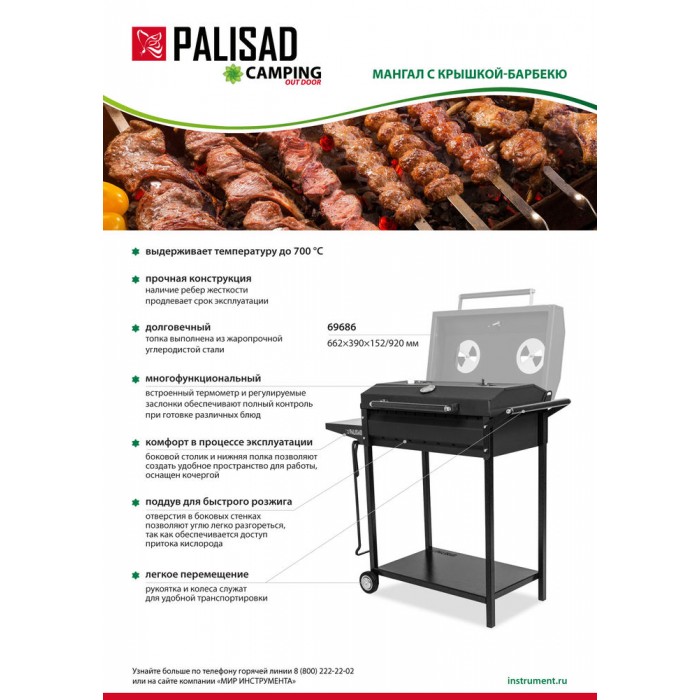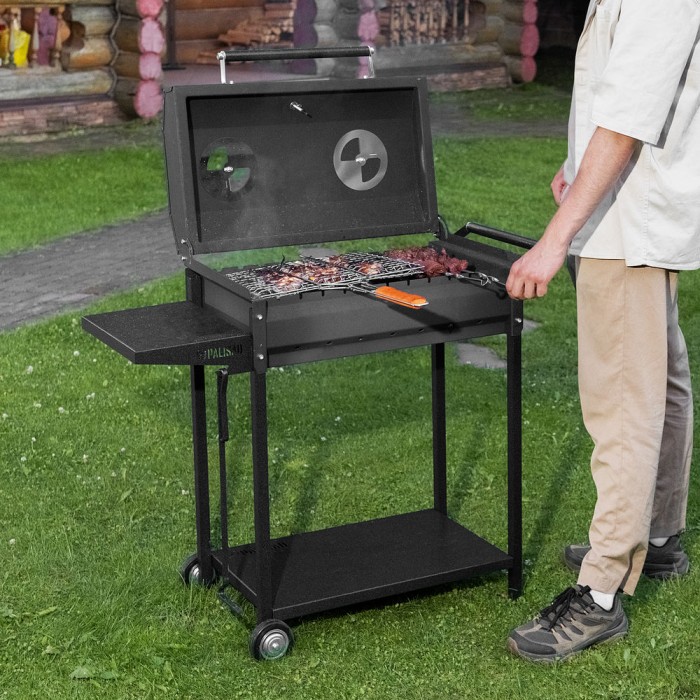 Мангал сварной на колесах, 662 х 390 х 152/805 мм, сталь 2 мм, кочерга в комплекте, Camping Palisad (69686)