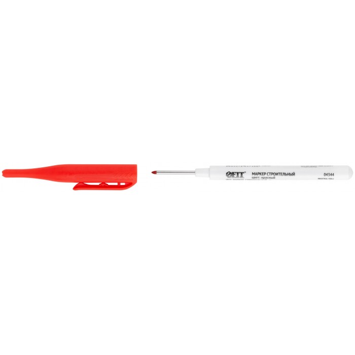 Маркер строительный перманентный, тонкий, удлиненное перо, красный (04344)