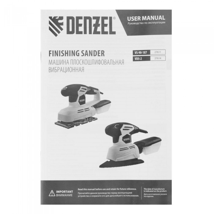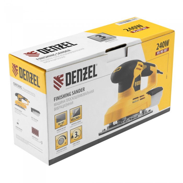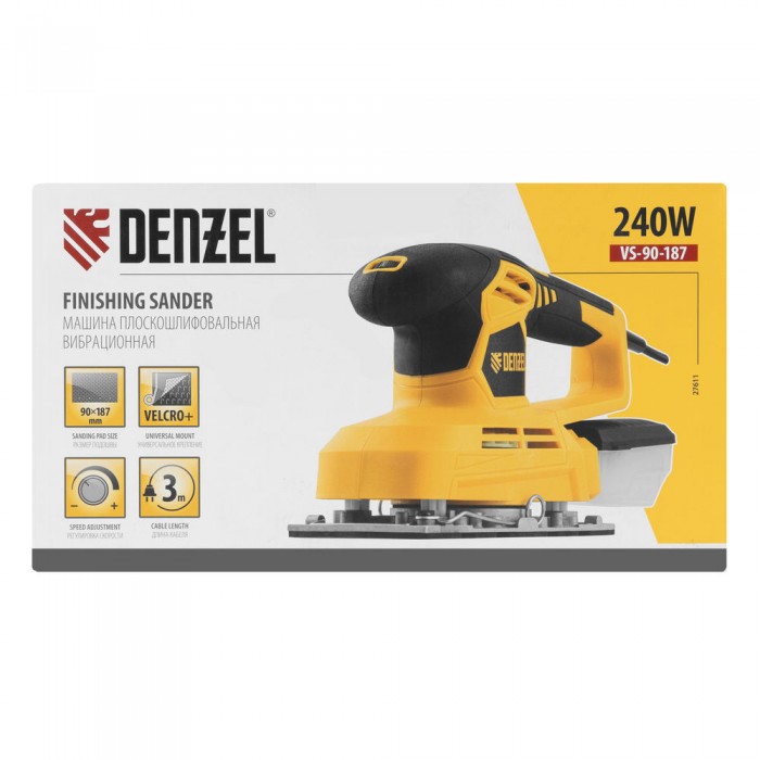 Машина плоскошлифовальная вибрационная VS-90-187, 240 Вт, 6000-11000 об/мин Denzel (27611)