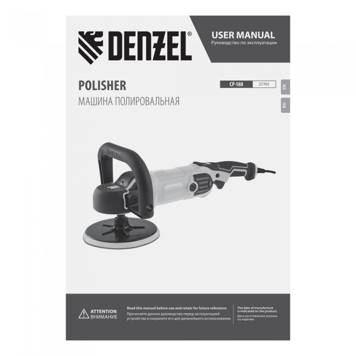 Машина полировальная CP-180, 1400 Вт, 180 мм, 0-3000 об/мин Denzel (27701)