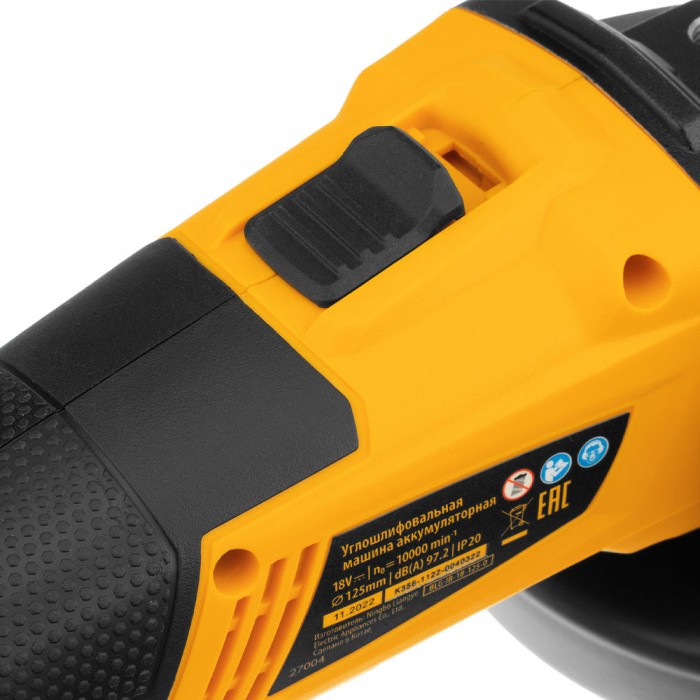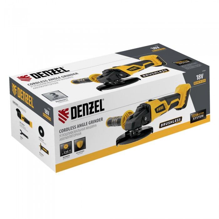 Машина углошлифовальная аккумуляторная бесщет. BLG-IB-18-125-0, Li-ion, 18 В Denzel (27004)
