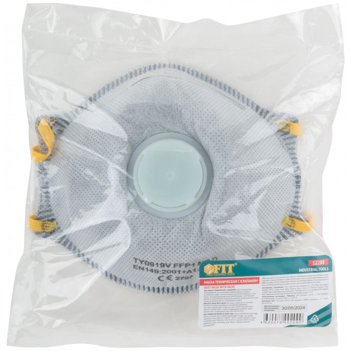 С клапаном. Четырехслойный синтетический фильтр (3 слоя ткани + угольный фильтрационный слой). Для использования на производстве для исключения влияния дыхания человека на параметры среды. Материал: полипропилен, пластиковый клапан с резиновой вставкой.