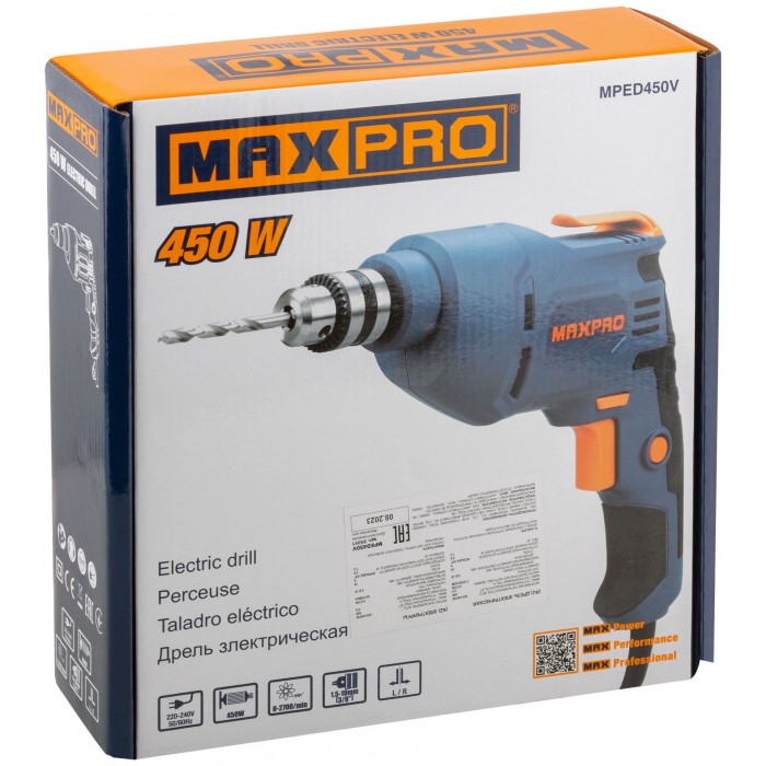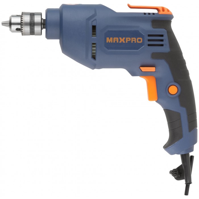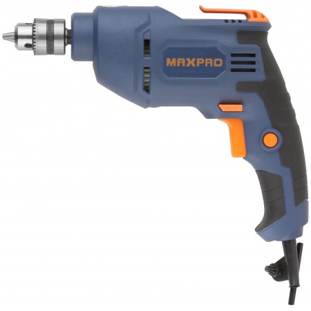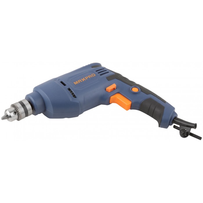 Дрель электрическая 450 Вт; 0-2700 об/мин; ключевой патрон 0,8-10 мм; 1,2 кг; резиновые вставки MAX-PRO 85051