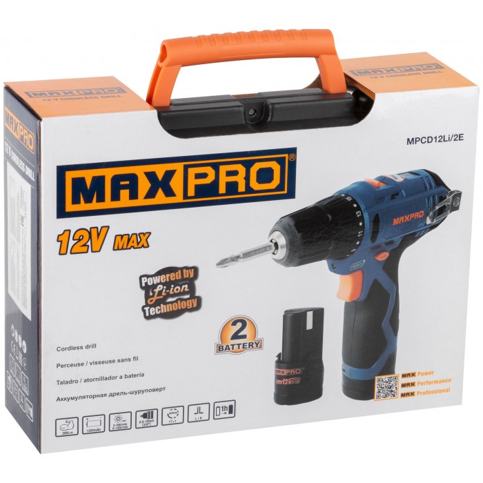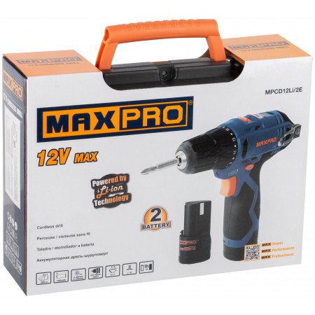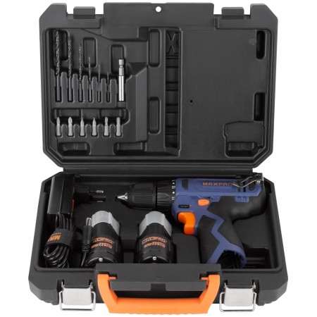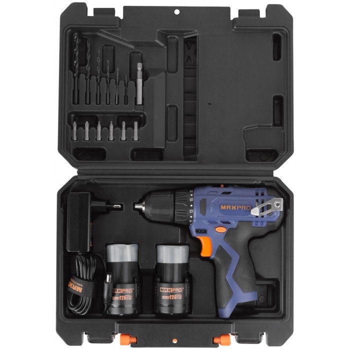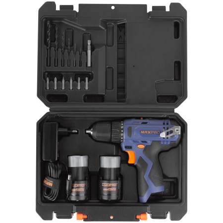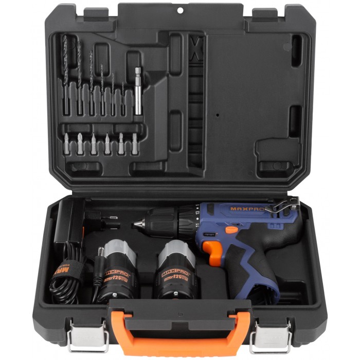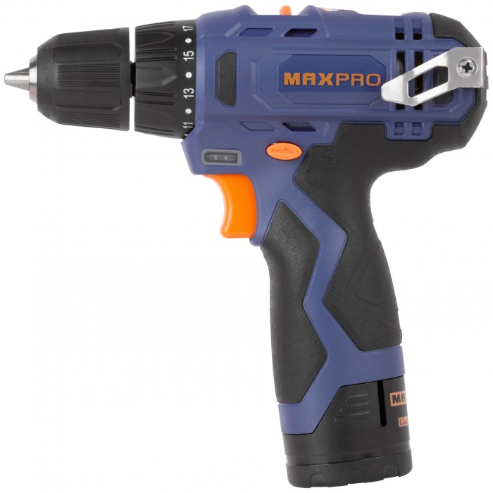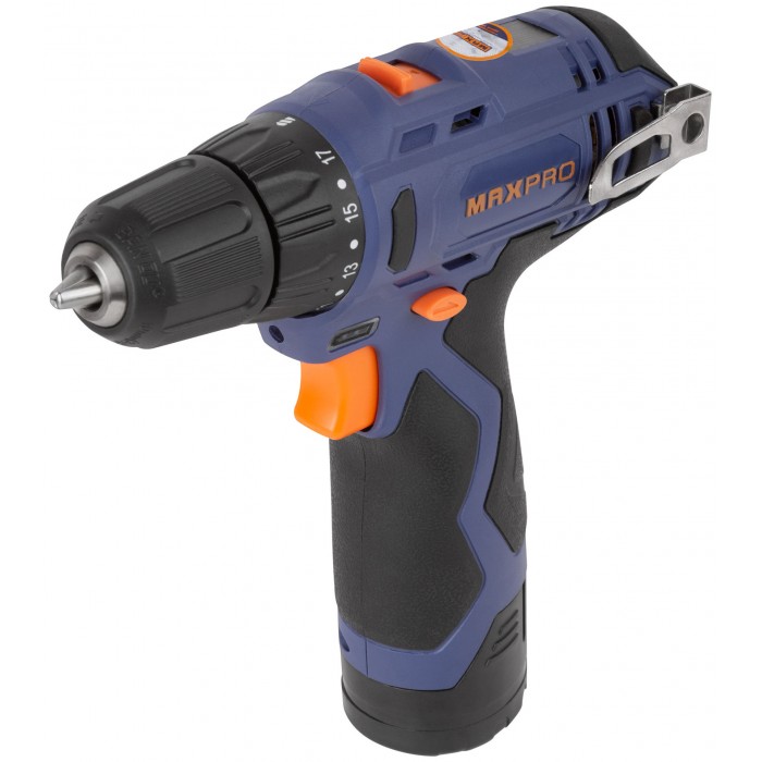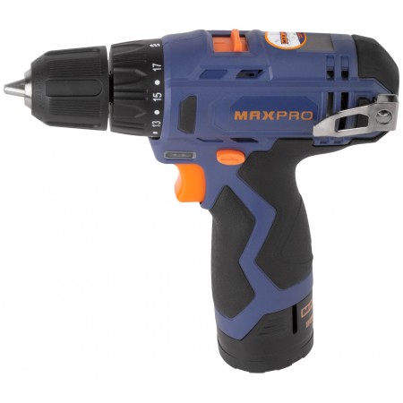 Дрель-Шуруповерт аккумуляторная 12 В; 0-350/0-1300 об/мин; 10 мм; 26 Нм; 2 батареи (Li-Ion) х1,3 Ач; 17+1; 1 ч.; регулировка оборотов MAX-PRO 85026