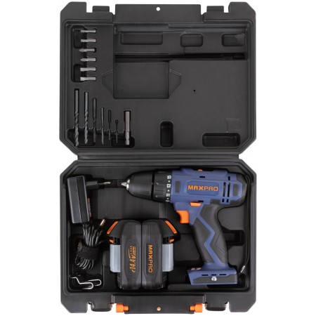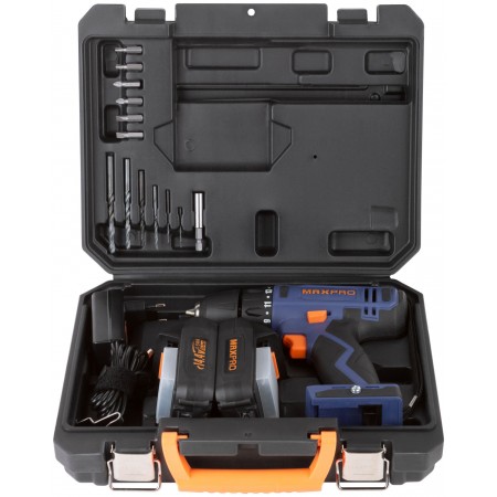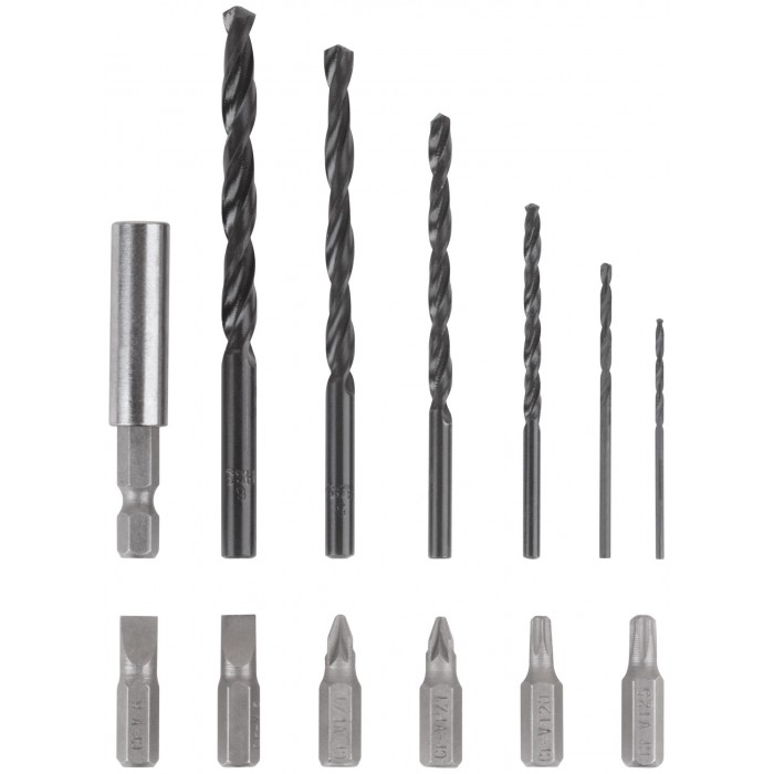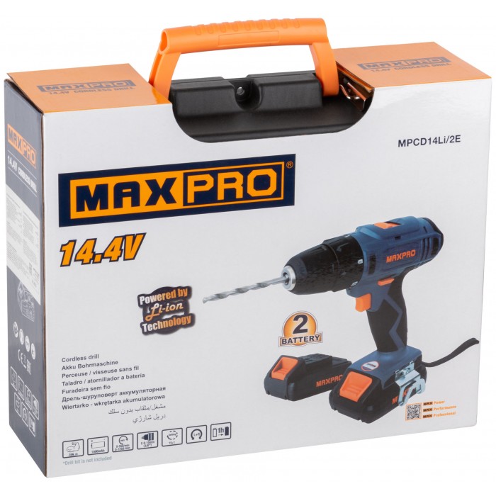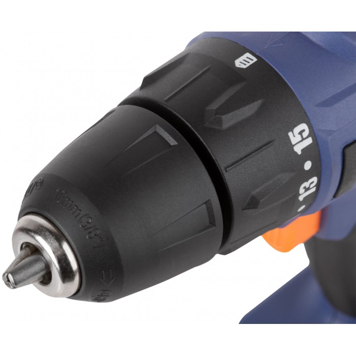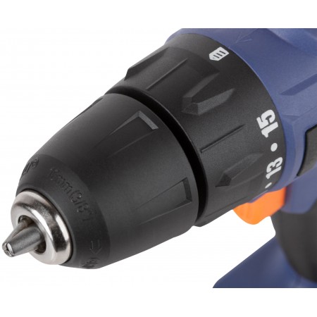 Дрель-шуруповерт аккумуляторная. 14,4 В; двухскоростной планетарный редуктор 0-350/0-1250 об / мин; быстрозажимной патрон 10 мм; максимальный крутящий момент 28 Нм; 2 батареи (Li-Ion) x 1,5 Ач; регулировка крутящего момента 15+1; быстрая зарядка 1 ч.; регулировка частоты вращения; реверс; LED подсветка; LED индикатор заряда; 1,25 кг; кейс.