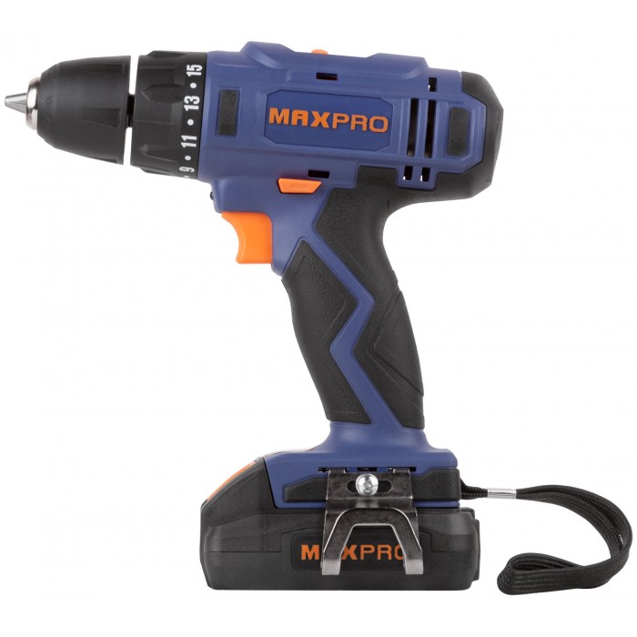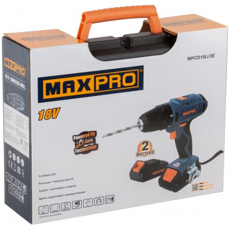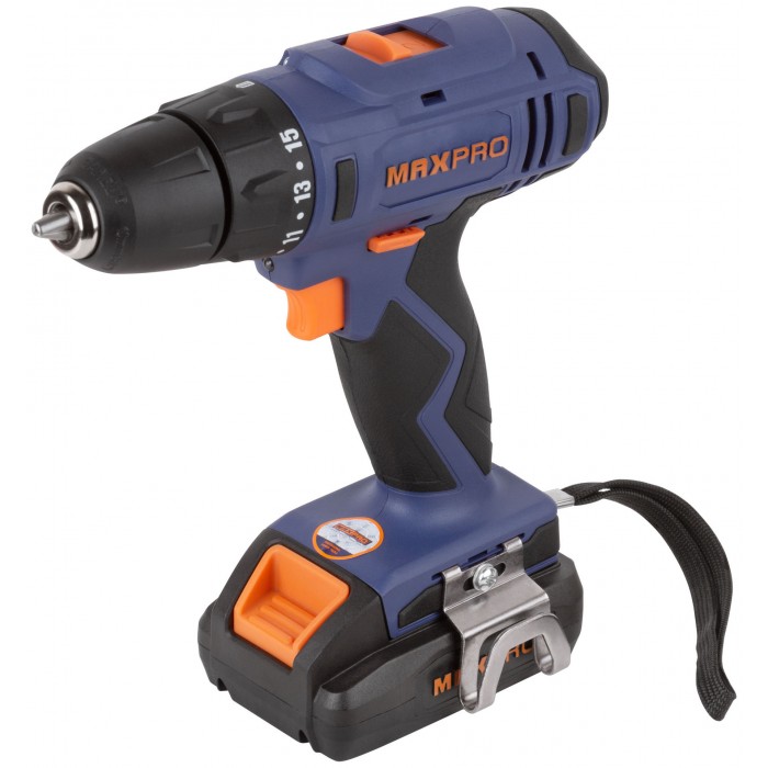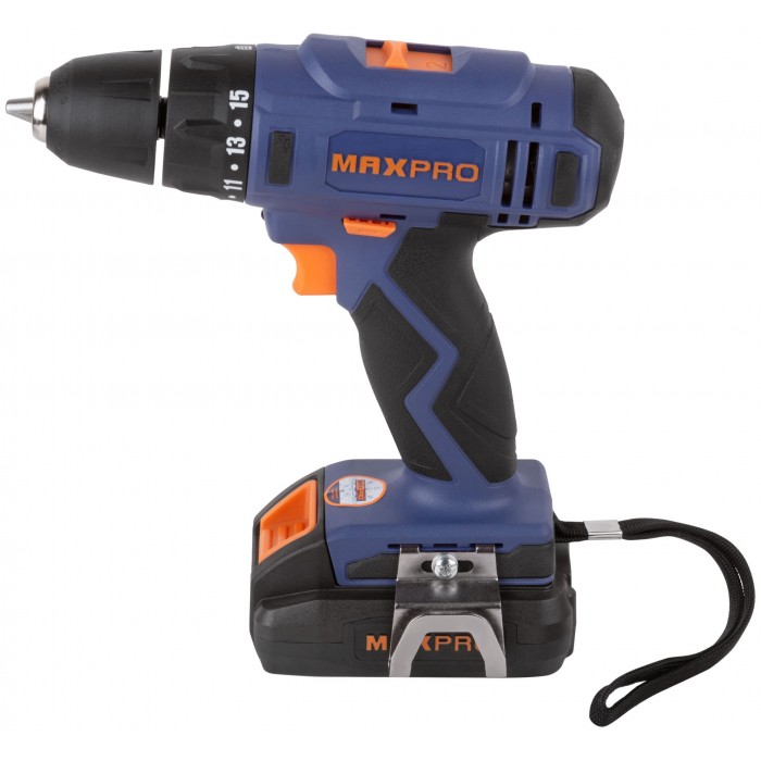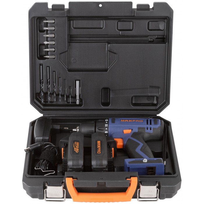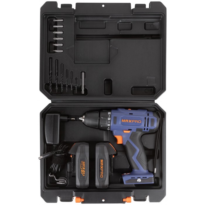 Дрель-Шуруповерт аккумуляторная 18 В; 0-350/0-1250 об/мин; 10 мм; 30 Нм; 2 батареи (Li-Ion) х1,5 Ач; 15+1; 1 ч.; регулировка оборотов MAX-PRO 85030