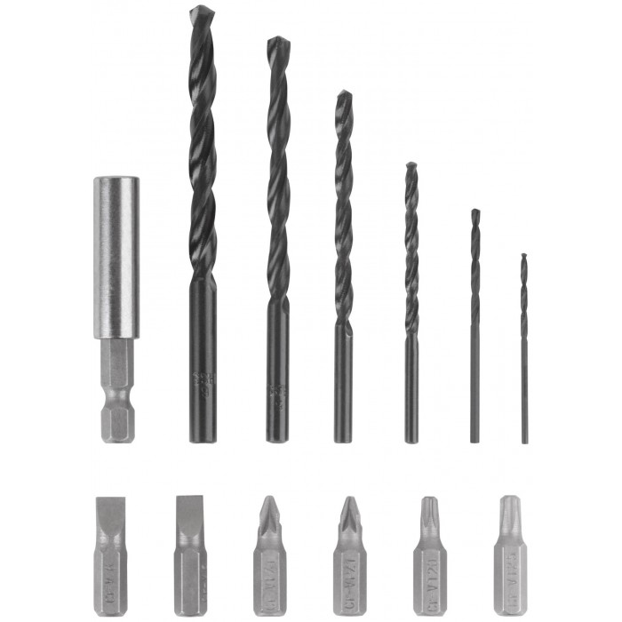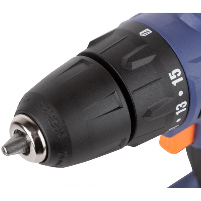 Дрель-шуруповерт аккумуляторная. 18 В; двухскоростной планетарный редуктор 0-350/0-1250 об/мин; быстрозажимной патрон 10 мм; максимальный крутящий момент 30 Нм; 2 батареи (Li-Ion) x 1,5 Ач; регулировка крутящего момента 15+1; быстрая зарядка батареи 1 ч.; регулировка частоты вращения; реверс; резиновые вставки; LED подсветка; 1,3 кг; кейс.