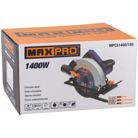 Пила циркулярная, 1400 Вт, 185/20 мм, 4700 об/мин, 4,3 кг, коробка, MAX-PRO, 85190