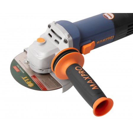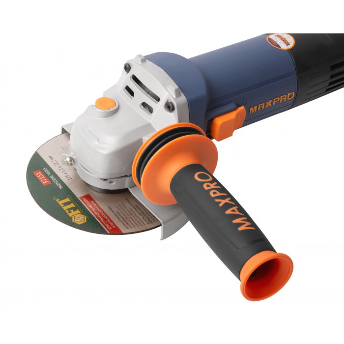 Шлифмашина угловая, 1200 Вт, 11500 об/мин, защитный кожух 125 мм, антивибрационная ручка, дополнительные щетки, 2,2 кг, кор., MAX-PRO, 85134