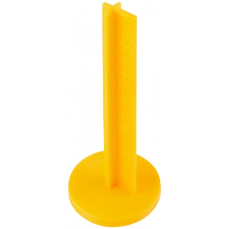 С клеевым слоем и мерной шкалой. Для быстрого и точного определения уровня выравнивания. Используются для цементно-полимерного пола, финишной стяжки и наливных ровнителей. Минимальная толщина слоя 4 мм. Расход: 1 шт. на 1 м². Для разметки потребуется лазерный уровень. Материал: полиэтилен (ПВД).