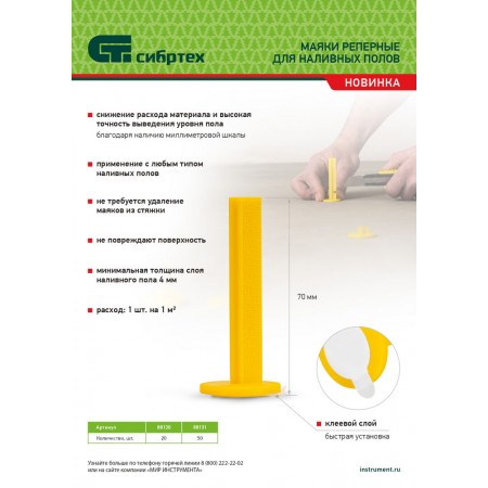 Маяки реперные для наливных полов, 20 шт. с клеевым слоем Сибртех (88130)
