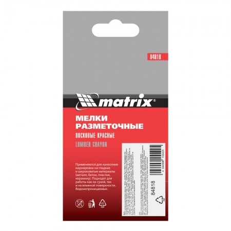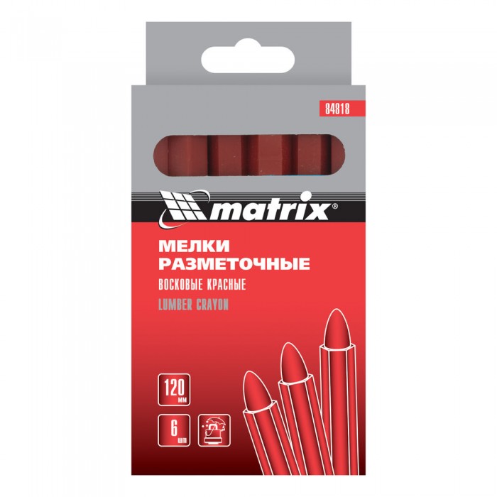 Мелки разметочные восковые красные, 120 мм, коробка 6 шт Matrix (84818)