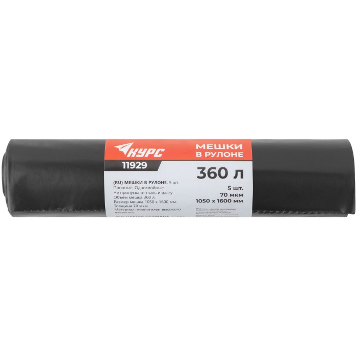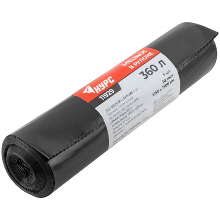 Мешки для строительного мусора, ПВД прочные, 360 л, 1050х1600 мм, толщина 70 мкм, 5 шт. (11929)