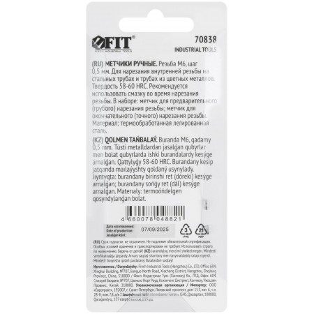 Метчики метрические, легированная сталь, набор 2 шт. М6х0,5 мм (70838)