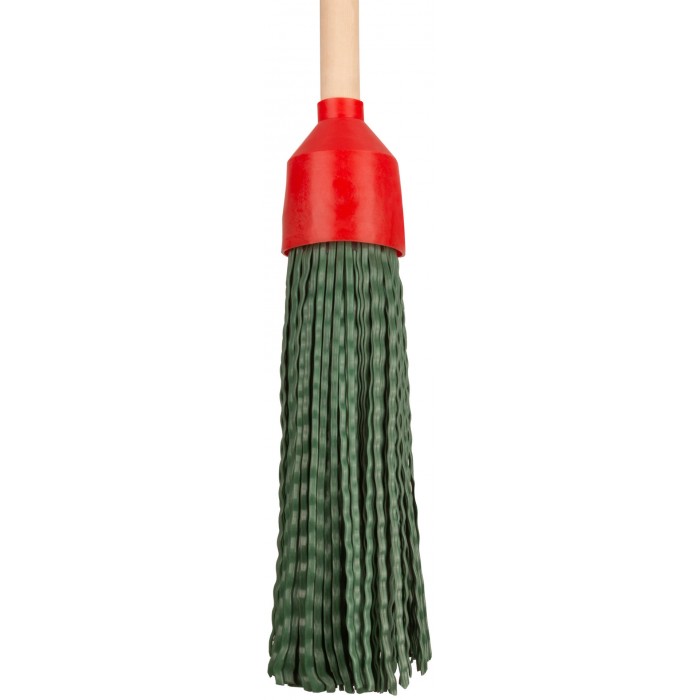 Метла пластиковая №10, круглая черная с деревянным черенком 120х260х1360 мм (68072)