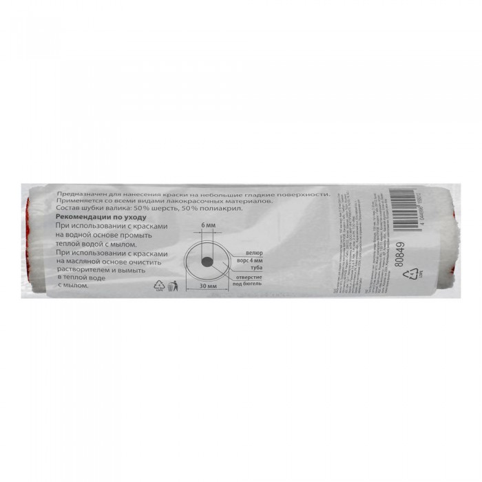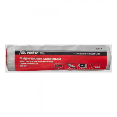 Миди-валик сменный для гладких поверхностей синтетический, 150 мм, ворс 4 мм, D 30 мм, D ручки 6 мм, велюр MTX (80849)