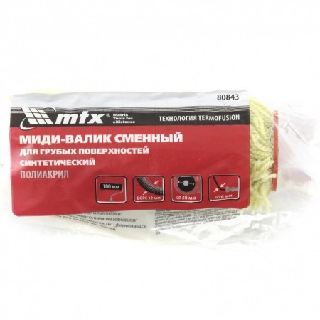 Миди-валик сменный для грубых поверхностей синтетический, 100 мм, ворс 12 мм, D 30 мм, D ручки 6 мм, полиакрил MTX (80843)