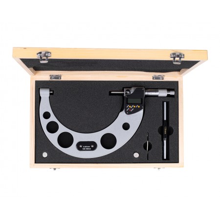 Гладкий цифровой микрометр предназначен для измерений внешних размеров детали, а также для поверки менее точной техники. Прибор применяется в машиностроении, приборостроении и других отраслях промышленности. Прибор состоит из скобы, подвижного стержня, неподвижной пятки, микрометрической головки — отсчетное устройство, основанное на применении винтовой пары, которая преобразует вращательное движение микровинта в поступательное движение подвижной измерительной пятки и электронный блок с органами управления. Цифровой гладкий микрометр позволяет быстрее и легче считывать показания, а также устанавливать прибор на «нуль», менять систему вычислений с метрической на дюймовую, устанавливать пределы допуска и др. функции. Инструмент оснащен теплоизоляционными накладками, исключающими влияние тепла рук на результаты измерений. Каждый прибор упакован в жесткий пластиковый или деревянный футляр и имеет паспорт изделия, в котором прописаны все необходимые характеристики и нормы эксплуатации.