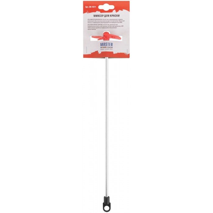 Миксер для краски, 60x365 мм, оцинкованный стержень диаметром 6 мм, пластмассовая насадка тип пропеллер (30-1471)