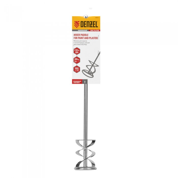 Миксер для красок и штукатурных смесей, 60 х 400 мм, оцинкованный, хвостовик SDS Plus Denzel (848817)