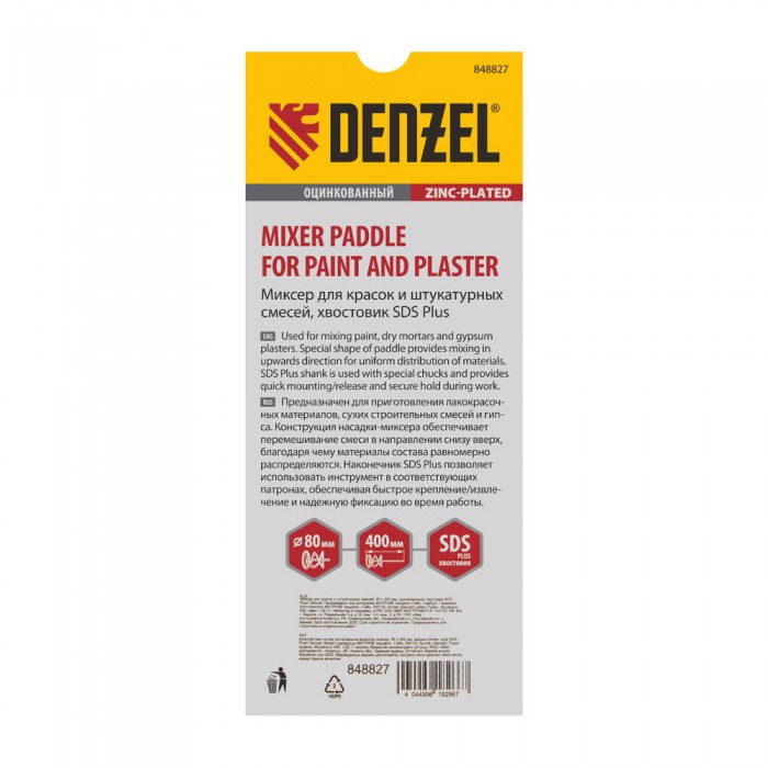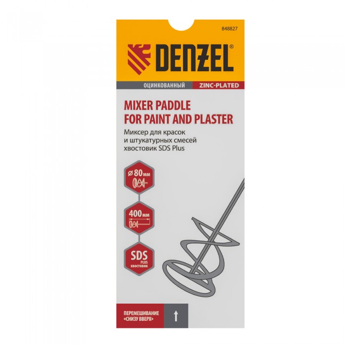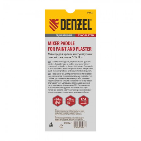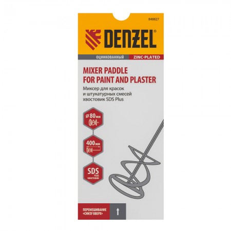 Миксер для красок и штукатурных смесей, 80 х 400 мм, оцинкованный, хвостовик SDS Plus Denzel (848827)