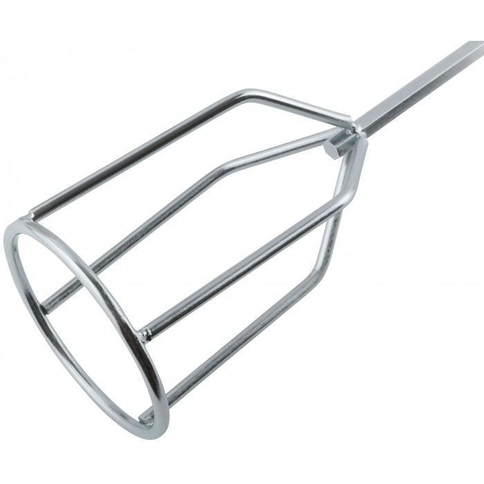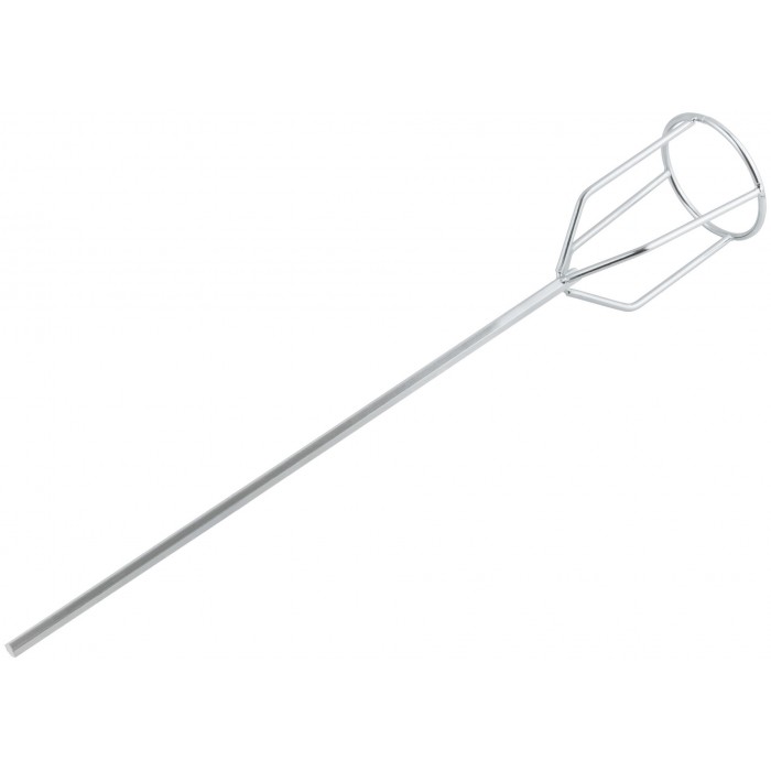 Профи. Насадка на дрель для перемешивания смесей повышенной вязкости (гипсовых смесей, составов для наливных полов и т.д.). Стержень диаметром 8 мм с шестигранным сечением. Материал: инструментальная сталь, цинковое покрытие.