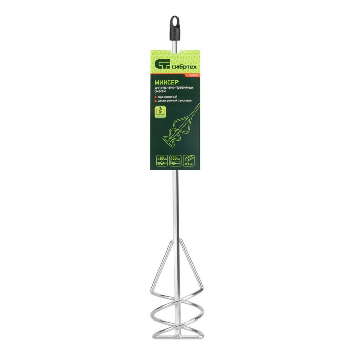 Миксер из оцинкованной стали, D 80 мм, L 450 мм, для песчано-гравийных смесей Сибртех (84810)