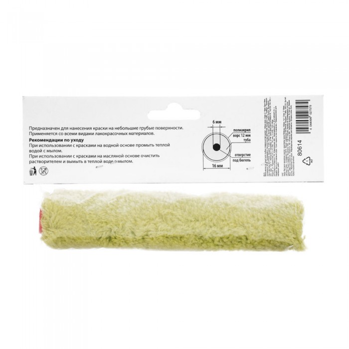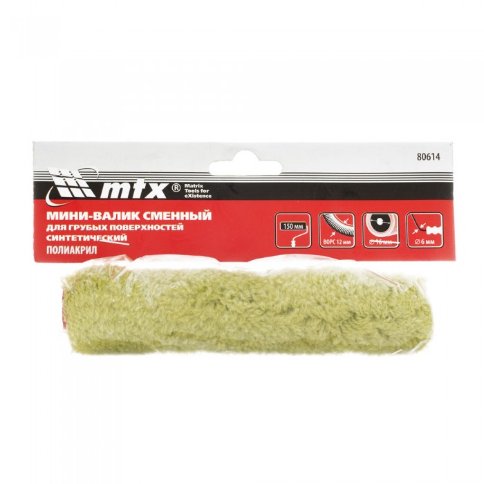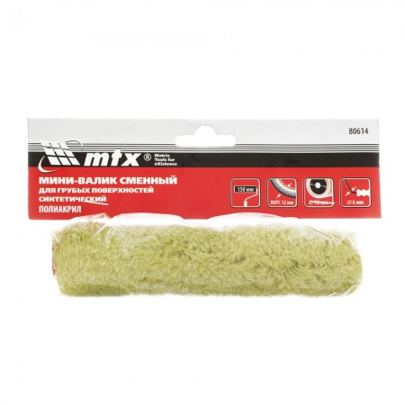 Мини-валик сменный для грубых поверхностей синтетический, 150 мм, ворс 12 мм, D 16 мм, D ручки 6 мм, полиакрил MTX (80614)