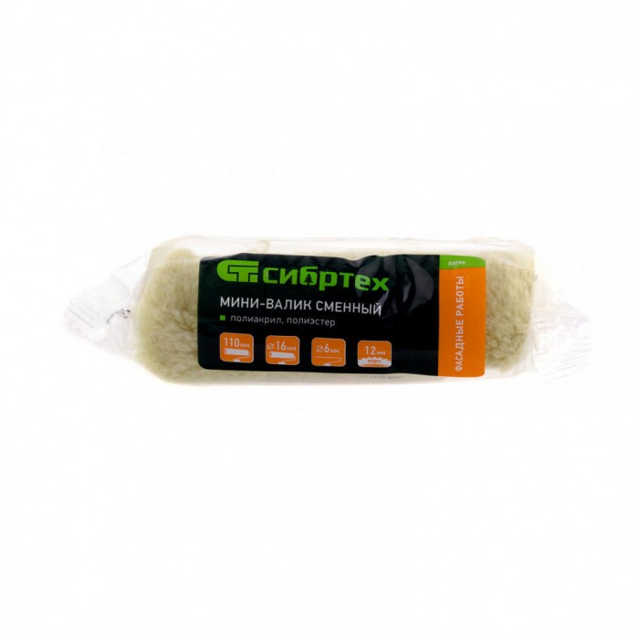 Мини-валик сменный "Фасадные работы", 110 мм, ворс 12 мм, D 16 мм, D ручки 6 мм, полиакрил, полиэстер Сибртех (80590)