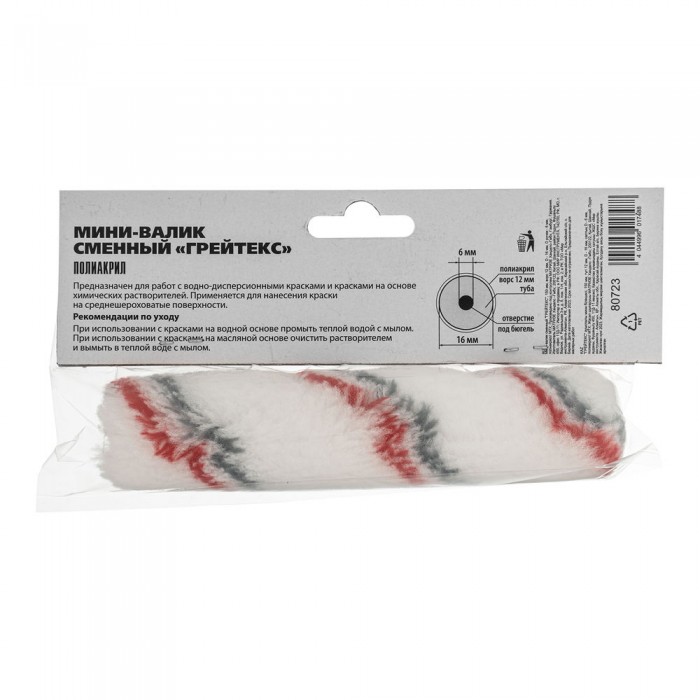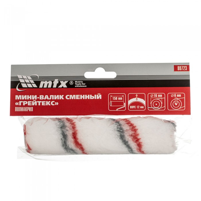 Мини-валик сменный "ГРЕЙТЕКС", 150 мм, ворс 12 мм, D - 16 мм, D ручки - 6 мм, полиакрил MTX (80723)