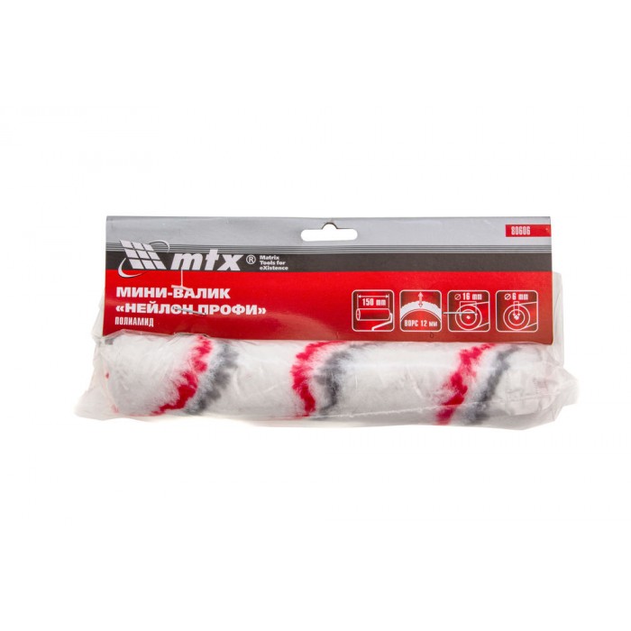 Мини-валик сменный, "Нейлон Профи", 150 мм, ворс 12 мм, D 16 мм, D ручки 6 мм, полиамид MTX (80606)