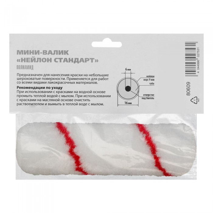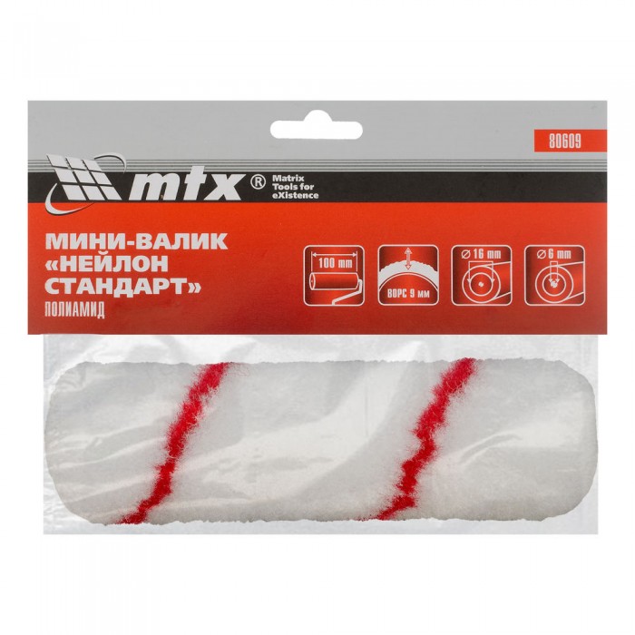 Мини-валик сменный, "Нейлон Стандарт", 100 мм, ворс 9 мм, D 16 мм, D ручки 6 мм, полиамид MTX (80609)