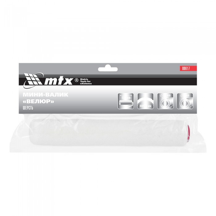 Мини-Валик сменный, "Велюр", 150 мм, ворс 4 мм, D 16 мм, D ручки 6 мм, шерсть MTX (80617)