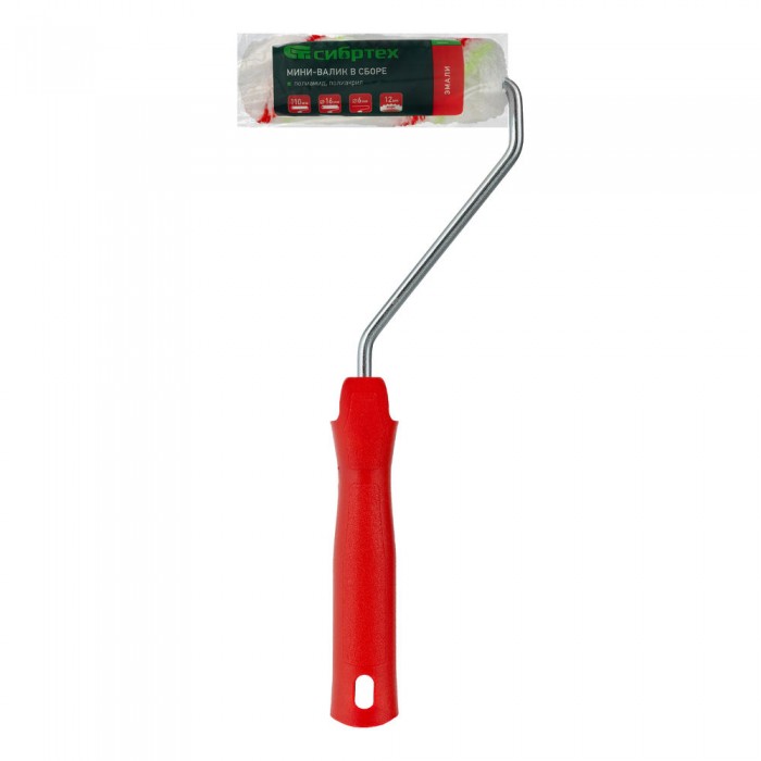 Мини-валик в сборе "Эмали", 110 мм, ворс 12 мм, D 16 мм, D ручки 6 мм, полиамид, полиакрил Сибртех (80584)