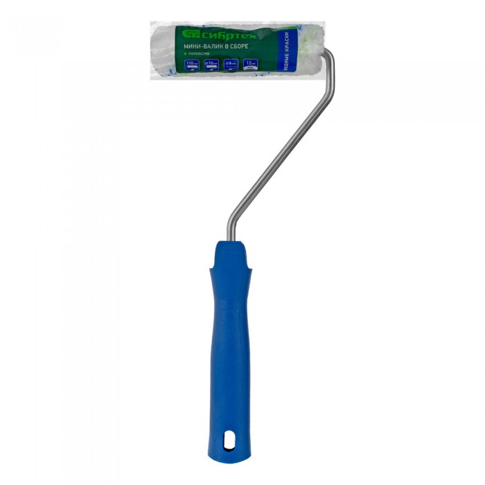 Мини-валик в сборе "Водные краски", 110 мм, ворс 12 мм, D 16 мм, D ручки 6 мм, полиэстер Сибртех (80580)